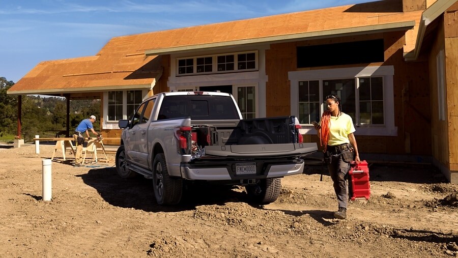 Be the talk of the tailgate. Pack along some conveniences camping. Plug-in a few power tools. With this much power your F-150® Lightning™ is up to the task.